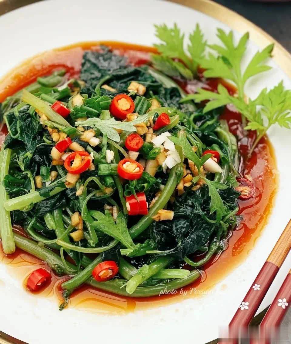 马齿苋500克+蒜末20克+姜末10克+花椒粉3克+